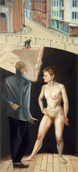 Die Interaktion zwischen Lust und Kommerz im Vordergrund von Nancy Tilitz Die Koppel, Hamburg ist zentrales Thema des Bildes. Inspiriert von dem Bild The Passage du Commerce Saint-Andre des polnisch-französischen Künstlers Balthus, in dem eine Weggabelung die Wahl zwischen zwei Wegen erzwingt, konfrontiert Tilitz die Betrachter mit der Wahl zwischen Religion und den niedrigeren Aspekten der Straße.